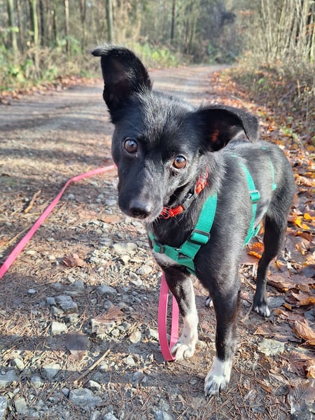 Madita ist eine zarte kleine Hunde-Elfe, die vermutlich in Kroatien auch ein Zuhause hatte. Sie kennt das Leben im Haus, die Vermutung ist, sie hat sogar die meiste Zeit drinnen verbracht. Draußen findet sie vieles noch sehr gruselig. Vor allem wenn sie sich der Situation an der Leine nicht entziehen kann, verfällt sie bei manchem erst einmal in Schockstarre. Radfahrer, Fußgänger und andere Hunde sind gerade jetzt um diese dunkle Jahreszeit sehr furchteinflößend. Stellt sie dann fest, es ist kein Monster, das sich nähert, läuft sie auch tapfer weiter.