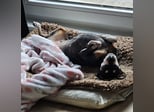 Sie bleibt nicht gerne alleine zuhause und wünscht sich daher Menschen, die viel Zeit für sie haben. Autofahrten mag sie nicht besonders und äußert dies durch Quieken. Zudem ist sie nicht kastriert.