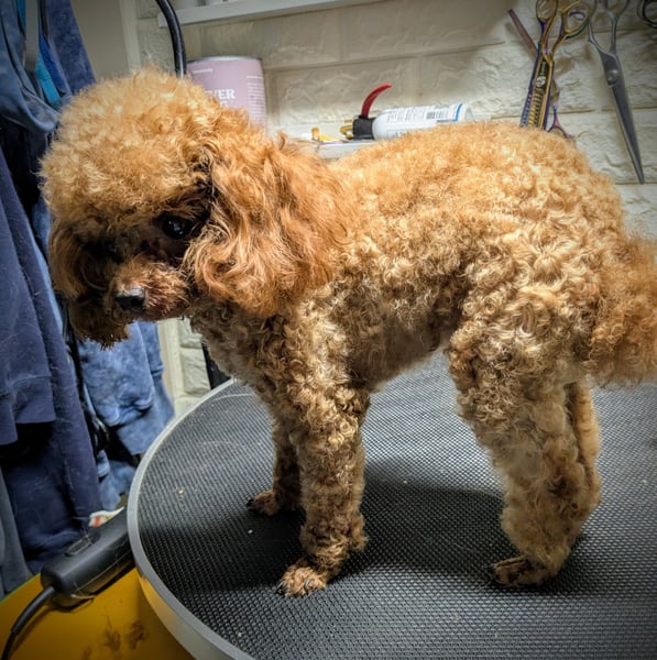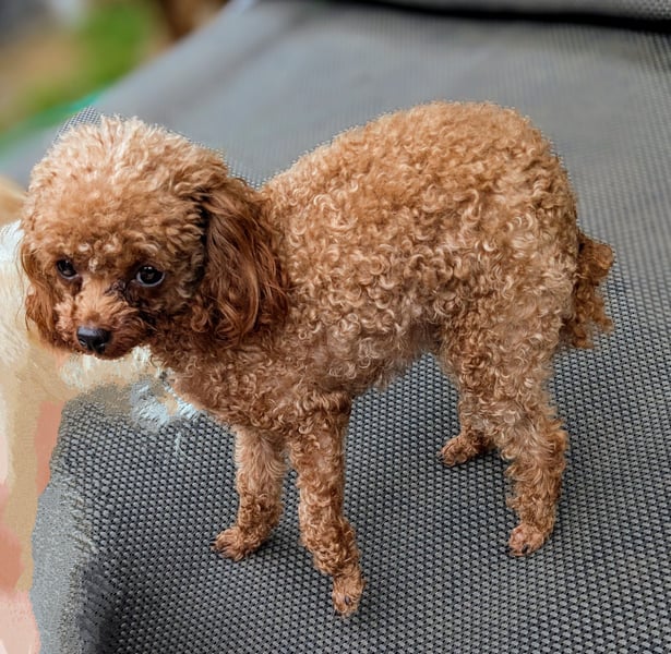 Mittlerweile ist die Hündin durchgepflegt, die Zähne gesäubert, geimpft und für fit befunden, liebt draußen sein, ist fröhlich, immunstabil und aufgeschlossen, kein Ergebnis von Inzucht, sondern eine kleine Linie Zwergpudel, laut Gentest reinrassig. KEINERLEI ERBKRANKHEITEN laut Gentest, der natürlich mitgegeben wird.