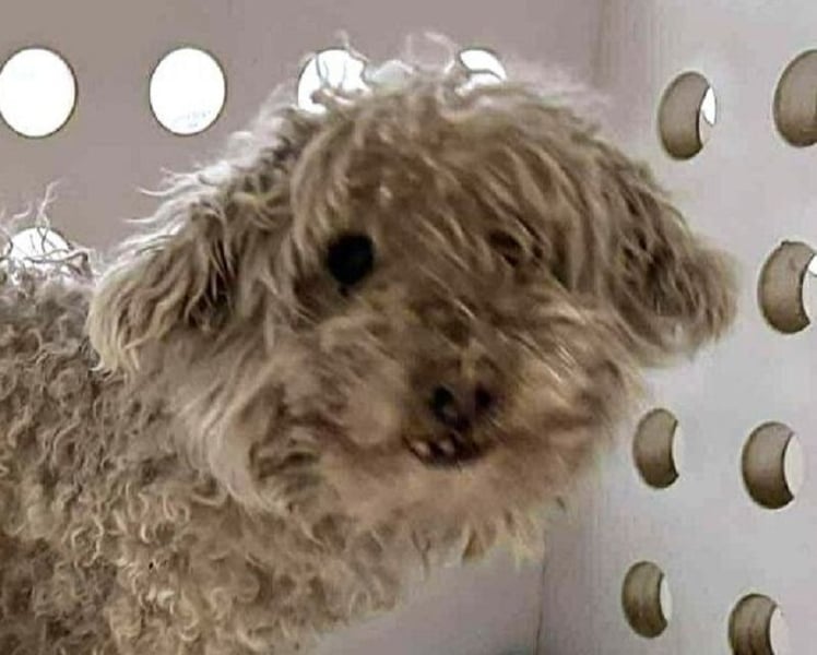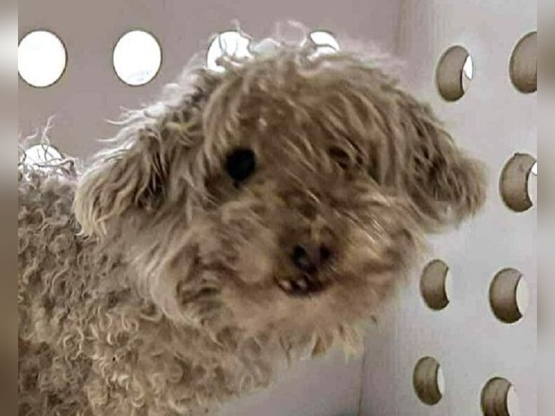 Dahlia, eine süße Zwergpudeldame alleine auf den Straßen Rumäniens. Der Besitzer wollte sie nicht mehr haben.