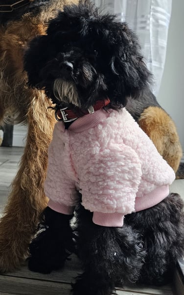 Sie zieht mit allem Zubehör, wie Jäckchen, einer hochwertigen Regenjacke, einem Weihnachtspullover, Leine, Halsband, Körbchen, Schlafbox, Schermaschine, Bürste und Futter und Leckerchen für mindestens einen Monat um.