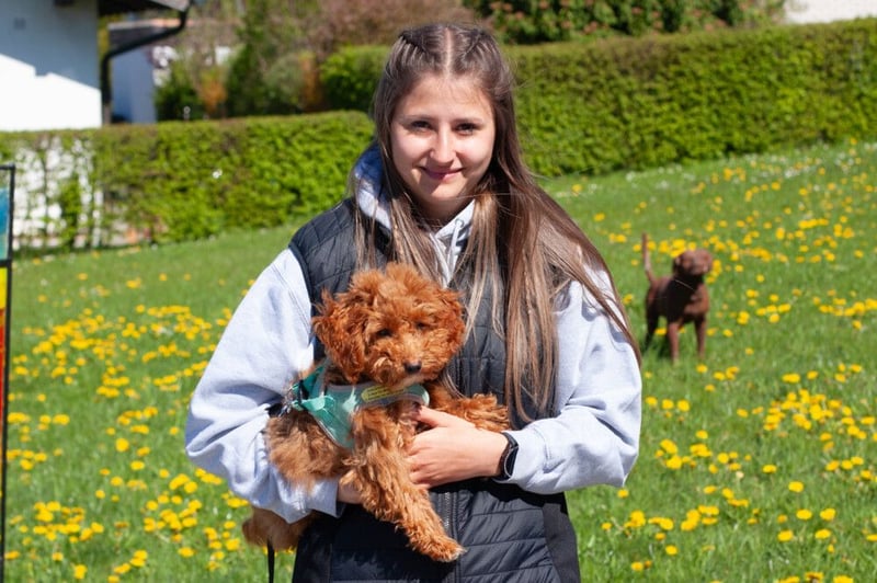 Die 4 Monate junge Zwergpudel-Dame Filly wurde von einem Züchter gekauft. Das Paar aus dem Landkreis Erlangen-Höchstadt stellte aber schnell fest, dass sie mit einem aufgeweckten Hundekind an ihre Grenzen stoßen und haben sich hilfesuchend an die Tierhilfe Franken gewandt. Filly sprüht nur so vor Lebensfreude. Frisch ins Leben gestartet, möchte sie am liebsten alles gleichzeitig: spielen, entdecken, toben, lernen und natürlich alle Herzen erobern. Die super Maus bringt alles mit, was man sich von einem Welpen wünschen kann. Sie ist freundlich, aufgeschlossen und begegnet der Welt mit neugierigen Knopfaugen und jeder Menge guter Laune. Typisch Welpe eben – ein bisschen Chaos, ganz viel Charme. Natürlich steht Filly noch am Anfang ihres “Karrierewegs als perfekter Hund”; das bedeutet, sie muss noch einiges lernen. Auch das Thema Stubenreinheit ist noch in Arbeit. Aber mit Geduld, liebevoller Konsequenz und einer Portion Humor wird aus der kleinen Entdeckerin ganz sicher eine großartige Begleiterin. Wer sich für Filly entscheidet, sollte wissen, sie bringt Leben in die Bude – im besten Sinne. Man bekommt eine treue, fröhliche Gefährtin, die jeden Tag ein kleines bisschen heller macht. Kurz gesagt: Filly ist kein fertiger Hund sondern ein wundervoller kleiner Schatz mit Locken, Herz und jede Menge Potential.
