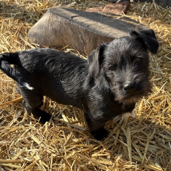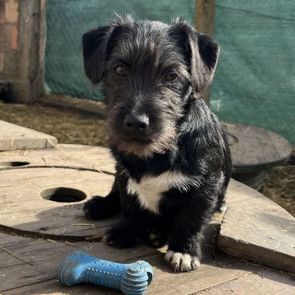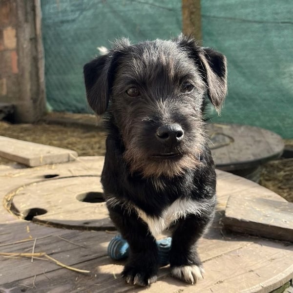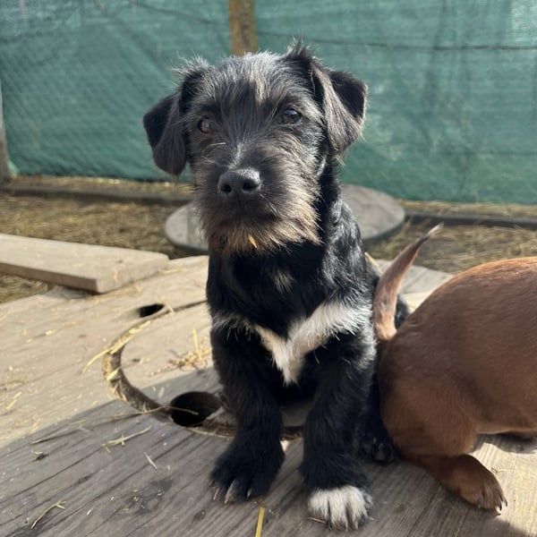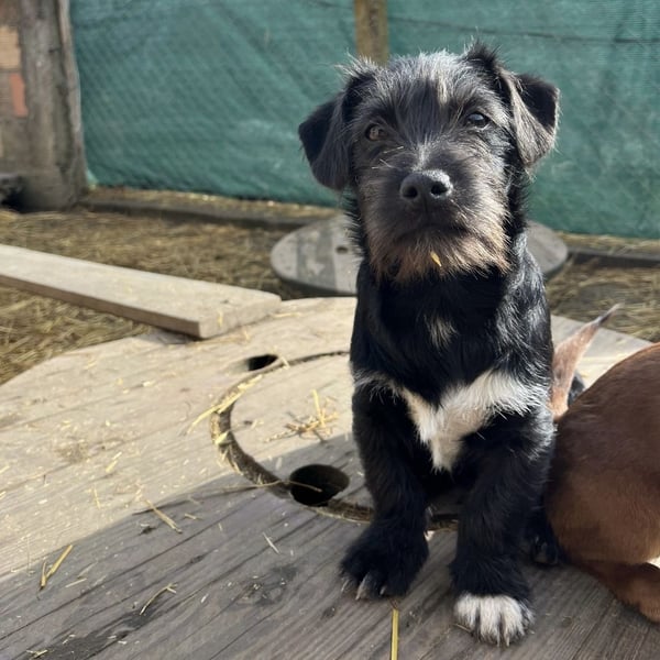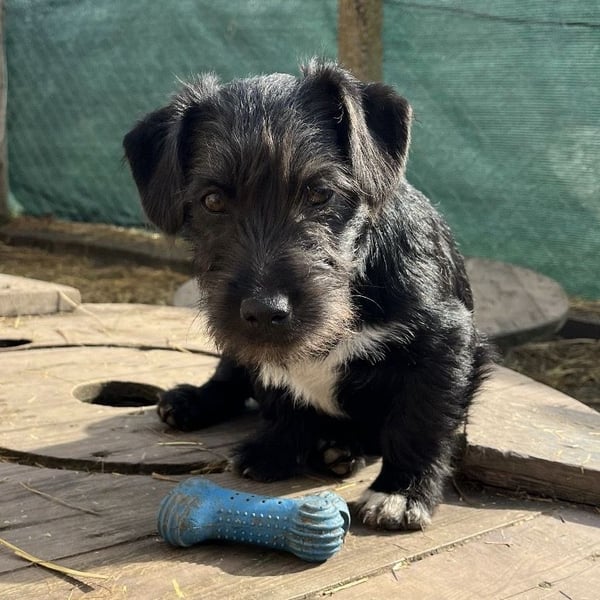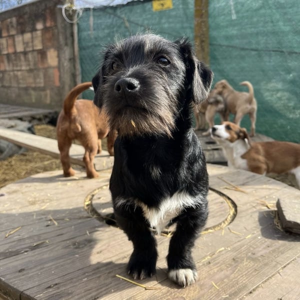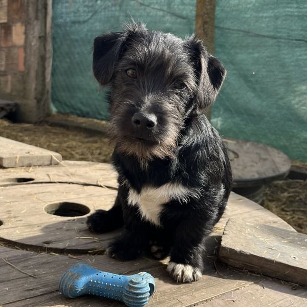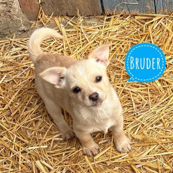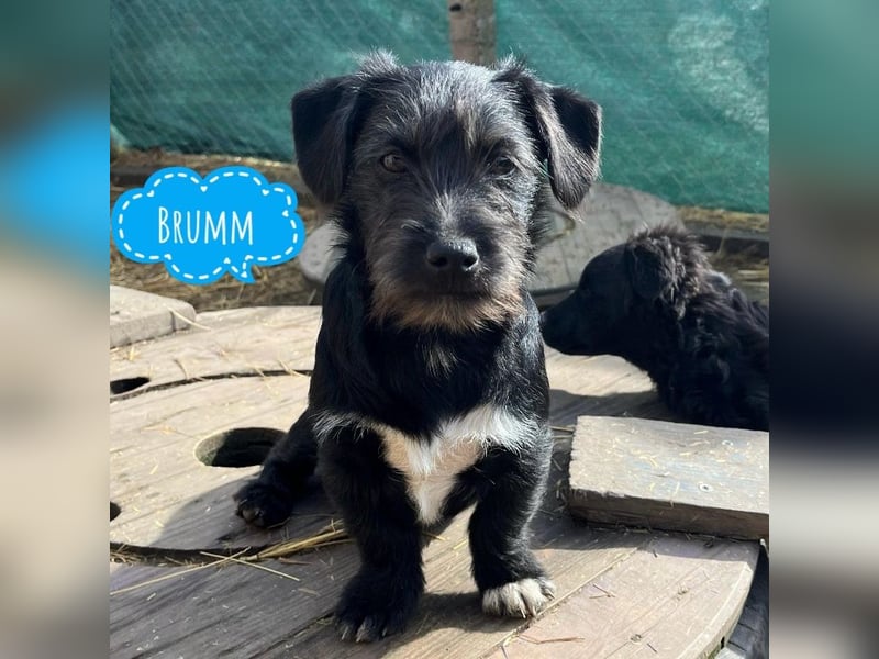 Brumm ist ein kleiner Bub, laut Tierarztschätzung ca. 4 Monate alt (geb. 20.10.2025), wiegt aktuell ca. 3kg (ist noch nicht richtig gewogen) und wird ausgewachsen zu den kleineren Hunden gehören, seine Mama wiegt nur 7kg, der Papa ist unbekannt. Vermutet wird ein Zwergschnauzer Mischling, obwohl sein Bruder eher wie ein Chihuahua aussieht. Während sein Bruder Bix weiß ist, ist Brumm der schwarze der beiden – genauso bezaubernd, nur in dunklem Fellkleid.