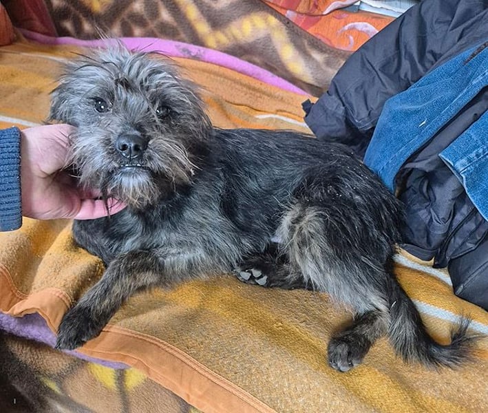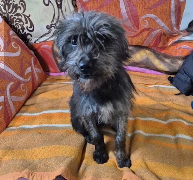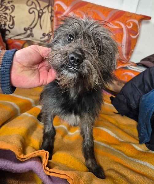 Das arme kleine Tinchen lebte seit Wochen noch um Weihnachten 2025 herum in Rumänien auf der Straße - allein, frierend, hungrig und voller Angst vor all dem Fremden, dem Lärm, der unbekannten Umgebung, den bösen Menschen, die sie entweder gar nicht wahrnahmen oder nach ihr traten, vor der Kälte, den anderen großen Streunern, die sie nicht an die paar Essensreste auf der Straße heranließen und für die sie stets ein Opfer war - kurzum, Tinchen litt sehr und versteckte sich vor jeder vermeintlichen Bedrohung, ohne dass sie dafür einen echten Rückzugsort für sich hatte. Selbst unser Tierheimleiter, der ein wahrer Hundeflüsterer ist, brauchte mehrere Anläufe, um sich ihr Vertrauen zu erobern. Aber gleich nach Silvester war es endlich soweit - Tinchen kam in seine Arme und ließ sich dann auch mit dem Auto nach Hause mitnehmen, nachdem sie noch einen Umweg über die Tierarztpraxis gemacht hatten. Inzwischen ist die kleine Maus gechipt, geimpft, kastriert und auch getestet (alles negativ).