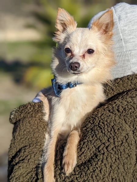 Hillary ist eine wunderschöne, hell cremefarbene Spitz-Mischlingshündin, die mit ihrem flauschigen Fell und ihrem offenen, liebevollen Wesen sofort alle Herzen erobert. Sie wurde ca. im Februar 2025 geboren, ist etwa 33 cm klein und wiegt zarte 3,6 kg – eine handliche kleine Begleiterin, die dennoch voller Lebensfreude steckt.