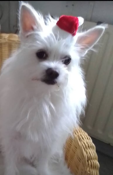 Eine susse spitzhundin ein und halb jahre in ganz weiss gesund mit papier sucht liebevolle famili am beste mit garten